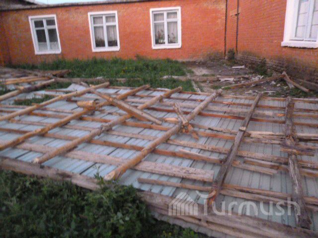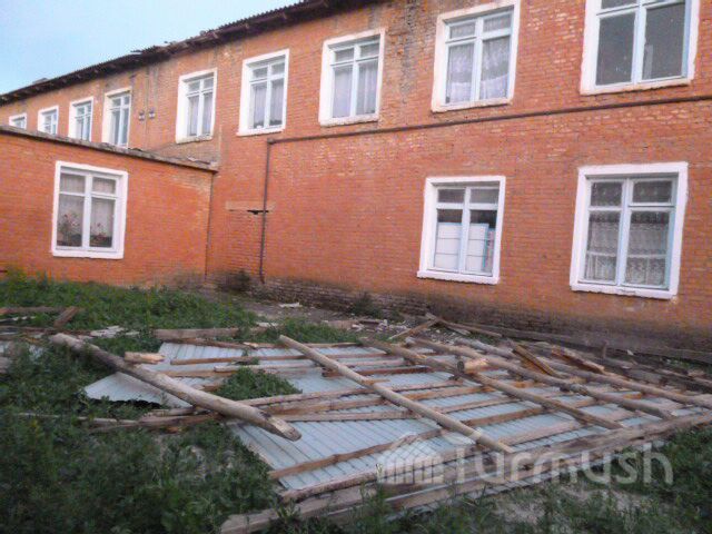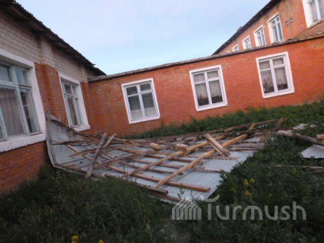 Фото — В Аксыйском районе сильный ветер снес кровлю школы и повалил ряд деревьев