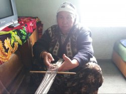 В Аксы 72-летняя Т.Мамадалиева изготавливает «бешик боо» из натуральной овечьей шерсти