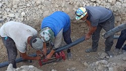 В аксыйском селе Сары-Кашка, где много лет нет питьевой воды, проводят трубы. Фото